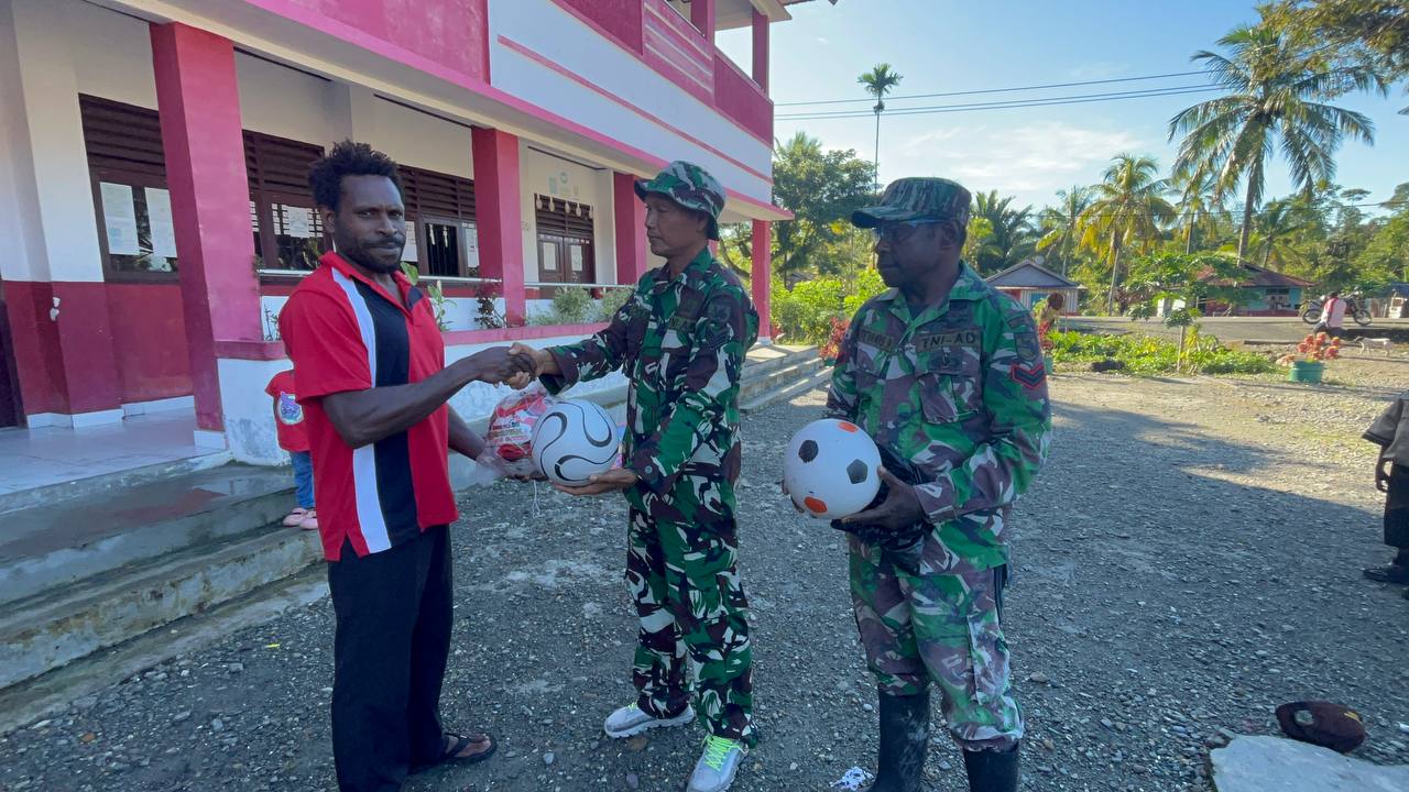 Timika, Torangbisa.com – Dalam upaya menumbuhkan semangat dan budaya olahraga di kalangan pelajar, Satgas TMMD ke-124 Kodim 1710/Mimika memberikan bantuan bola kaki kepada siswa-siswi di SD Pigapu. Jumat (23/5/2025).