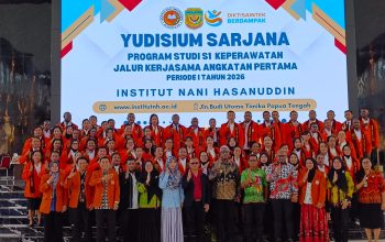 Timika, Torangbisa.com – Bupati Mimika, Johannes Rettob, menyampaikan apresiasi kepada Institut Nani Hasanuddin atas komitmennya mencetak tenaga kesehatan profesional dalam acara yudisium Sarjana Keperawatan (S1) kelas kerja sama Mimika yang berlangsung di Gedung Eme Neme Yauware, Jumat (24/04/2026).