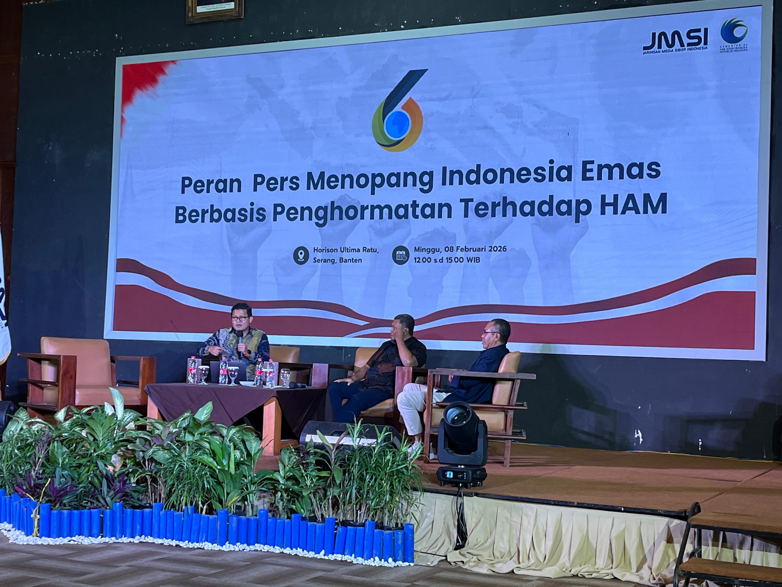 Penegasan tersebut disampaikan Ahli Hukum Dewan Pers, Hendrayana, S.H., M.H., usai memaparkan materi dalam Seminar HUT ke-6 Jaringan Media Siber Indonesia (JMSI) bertajuk “Peran Pers Menopang Indonesia Emas Berbasis Penghormatan Terhadap HAM” yang digelar di Ballroom Hotel Horison Ultima Ratu, Serang, Banten, Minggu (8/2/2026).