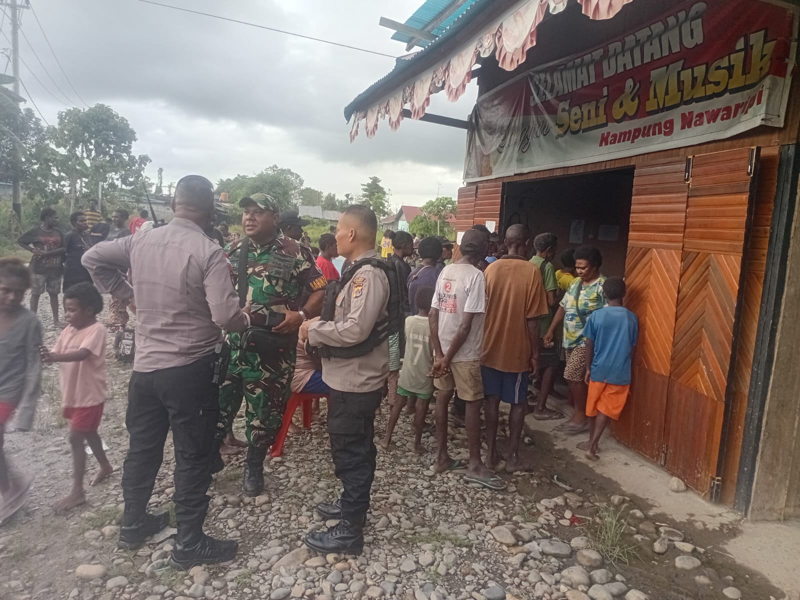 2. Kepala Kampung Nawaripi, Norman Ditubun didampingi Kasat Sabhara Polres Mimika, Iptu F. Tethol, Perwakilan Distrik Wania, Pendamping Dana Desa, Siti Yauwarin, Perwakilan DPMK Kabupaten Mimika, Babinsa, Yang Faref, Babinpot Dirga Serka Kasimirus Anitu.
