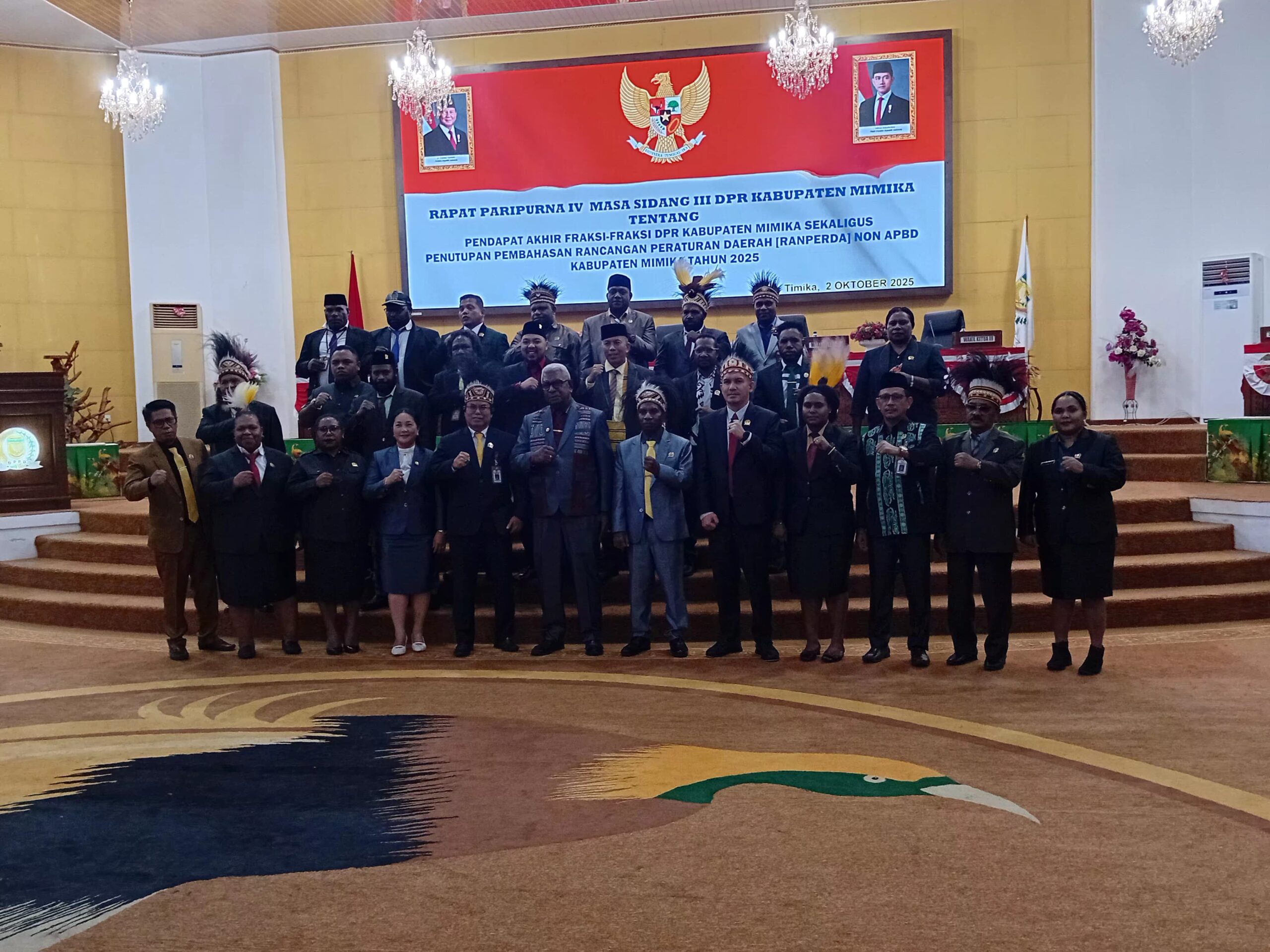 Penyetujuan tersebut dilaksanakan pada Rapat Paripurna IV masa sidang III tentang pendapat akhir DPRK setelah mendengar jawaban pemerintah yang berlangsung di gedung DPRK Mimika, lantai 2, Kamis (2/10/2025), sekaligus menutup rapat paripurna tersebut.