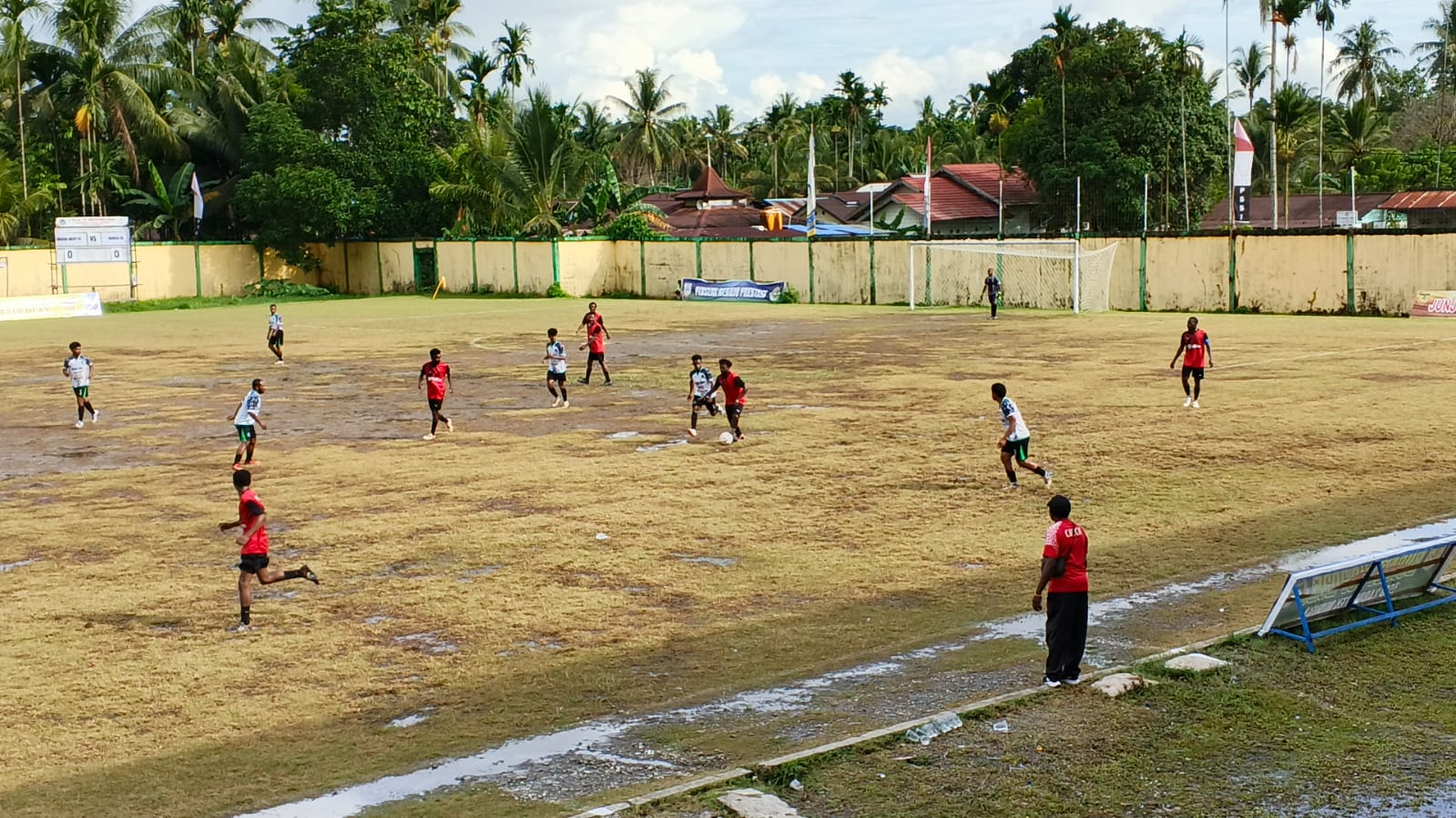 Di pertengahan babak pertama tepatnya di menit ke 13 momen seru terjadi, bola tembakan pemain Wania yang mengarah kegawang Aruka terhenti di genangan air depan gawang, dan langsung disambar oleh pemain nomor 15,Rizal Ardiansyah Kuman langsung dan mencetak gol pembuka (1-0).