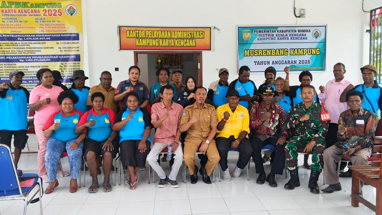 Timika, Torangbisa.com – Pemerintah Kampung Karya Kencana menggelar Musyawarah Perencanaan Pembangunan Kampung (Musrenbang) Tahun 2026 yang dibuka langsung oleh Kepala Distrik Kuala Kencana, Yemi Gobai di Kantor Kampung Karya Kencana, Kamis (9/10/2025).