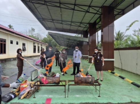 Barang bukti tersebut dimusnahkan dengan cara dibakar, diblender, dan dihancurkan sesuai jenis dan karakteristik masing-masing, sehingga tidak dapat digunakan kembali.