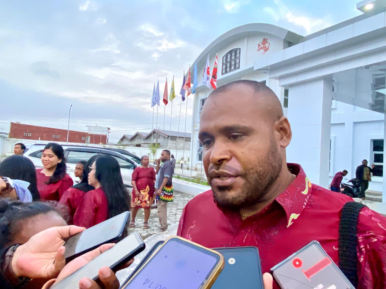 Ketua Komisi Pemilihan Umum (KPU) Kabupaten Mimika saat memberikan Sambutan dalam Kegiatan Ibadah Syukuran Masuk KantorKabid Bina Politik Dalam Negeri Badan Kesbangpol Kabupaten Mimika Lukas Luly Lassan saat menyampaikan sambutanKordiv Data Budiono Muchie bersama Pendeta Alex Isir, Ustadz. H. Abdul Muthalib dan Kapolres Mimika I Komang BudiarthaKetua KPU Dete Abugau foto bersama Staf KPUKetua KPU Dete Abugau saat diwawancara awak mediaKetua Dewan masjid Indonesia Kabupaten Mimika, Ustadz. H. Abdul Muthalib Elwahan saat memimpin Doa SyukurPendeta Alex Isir saat memimpin Ibadah SyukuranStaf KPU Mimika Sartika Mangontan selaku MC memandu acara Ibadah SyukuranKoordinator Divisi SDM Delice Somou saat mengikuti kegiatan Ibadah Syukuran