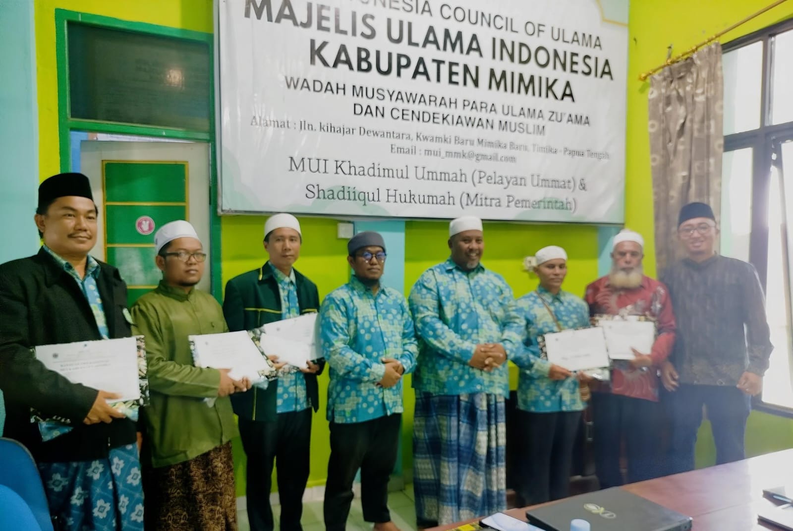 “Rapat ini adalah rapat koordinasi antara MUI daerah dan MUI distrik. Pada siang hari ini juga kami menyerahkan dana operasional kepada masing-masing MUI distrik,” ujar KH. Muh Amin.