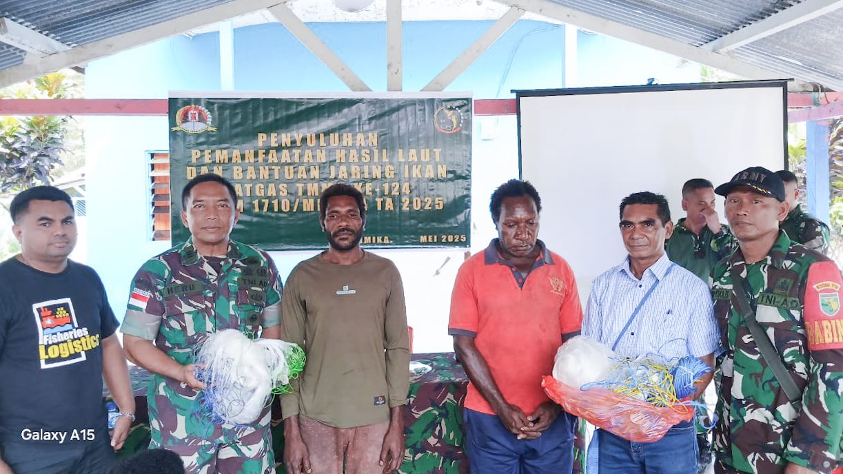 Selain penyuluhan, Satgas TMMD juga memberikan bantuan jaring ikan kepada masyarakat untuk membantu meningkatkan hasil tangkapan ikan dan mendukung ekonomi masyarakat.