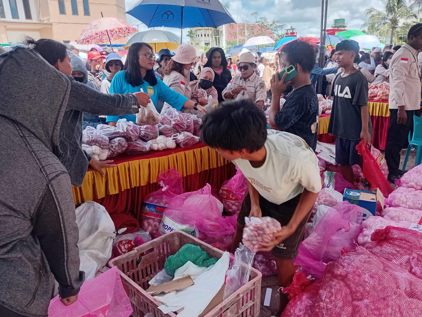 “Kalau dari kegiatan ini saya lihat bagus sekali. Untuk kami ibu-ibu rumah tangga sangat membantu dari segi ekonomi, terutama biaya hidup sehari-hari,” ungkapnya saat ditemui di lokasi kegiatan pangan murah, Kamis (16/10).