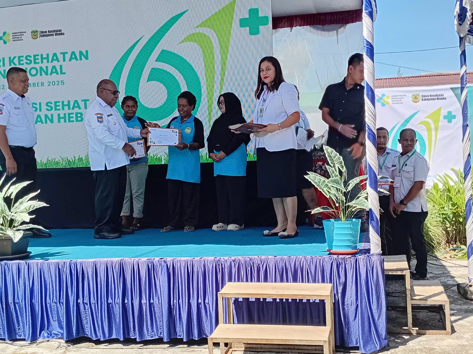 Peringatan HKN ke-61 di Mimika juga dirangkaikan dengan penyerahan sertifikat dan rapor kesehatan masyarakat, serta kunjungan ke ruang medical check-up yang telah disiapkan di Puskesmas Karang Senang.