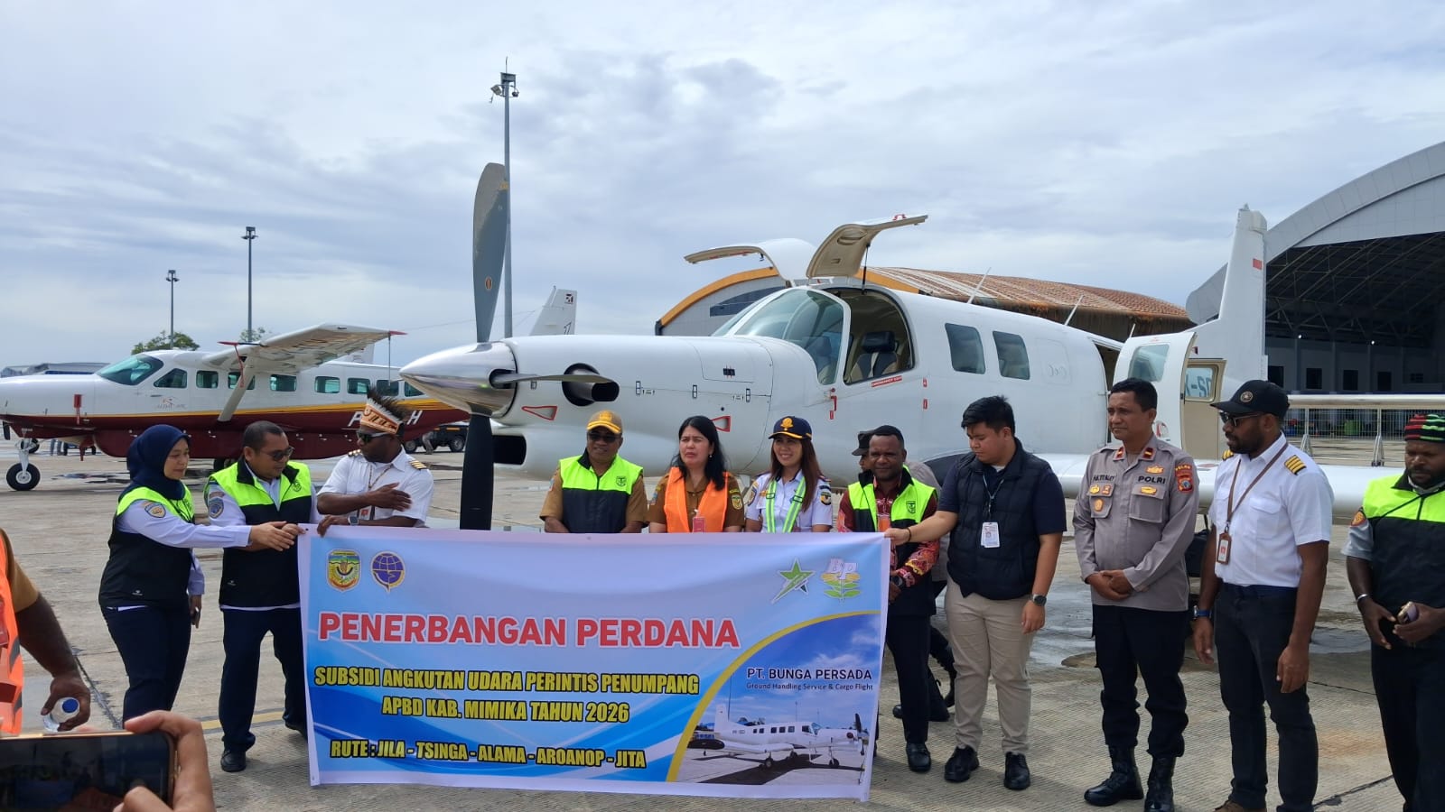 Program angkutan udara perintis ini didanai melalui APBD Kabupaten Mimika Tahun Anggaran 2026 dan dilaksanakan bekerja sama dengan PT Bunga Persada sebagai operator penerbangan.