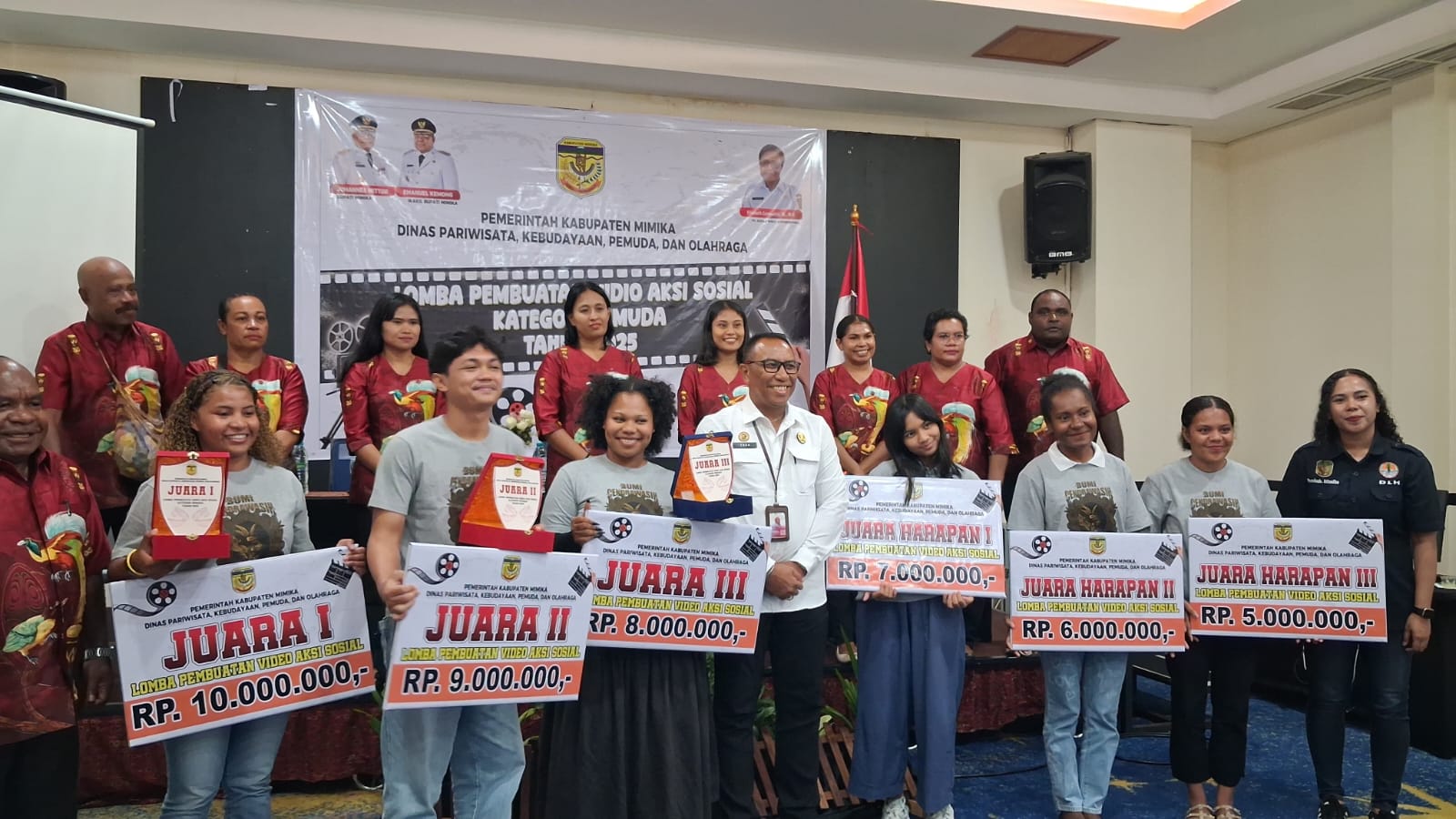 Timika, Torangbisa.com – Dinas Pariwisata, Kebudayaan, Pemuda, dan Olahraga (Disparbudpora) Kabupaten Mimika menggelar Lomba Pembuatan Video Aksi Sosial Kategori Pemuda Tahun 2025 yang berlangsung di Hotel Horison Ultima, Rabu (17/12/2025).