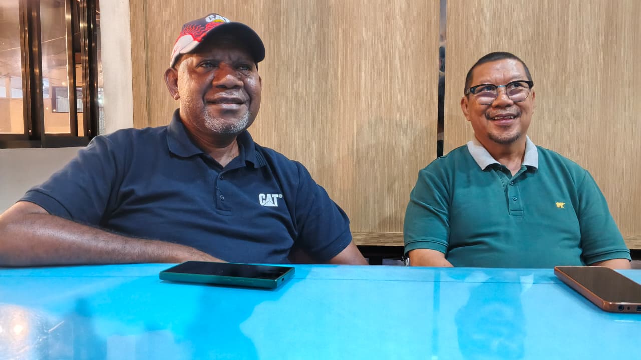 Bendahara panitia pelaksana pelantikan pengurus Kadin Papua Tengah, Simon Gobay didampingi Ketua Kadin Kabupaten Mimika, Bram Raweyai (foto: Riki Lodar/ Torangbisa.com)