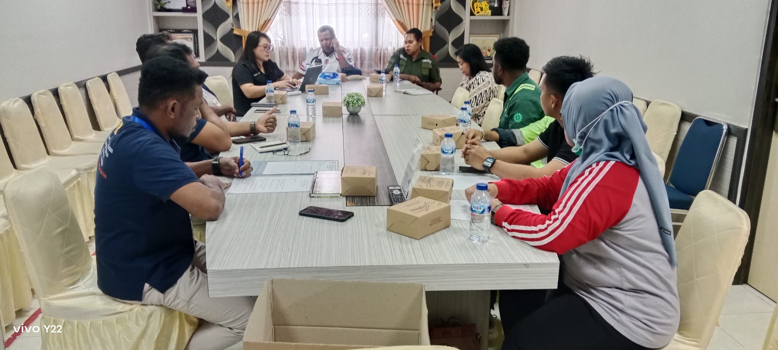 Pertemuan yang digelar di ruang pertemuan Kantor Dinas Kesehatan tersebut dihadiri oleh Asisten II Bidang Ekonomi dan Pembangunan, Frans Kambu, Dinas Kesehatan, Dinas Lingkungan Hidup (DLH), dan PT Mitra Hijau Asia membahas koordinasi dan pemenuhan standar operasional sebelum limbah medis diangkut dari fasilitas pelayanan kesehatan ke pelabuhan.