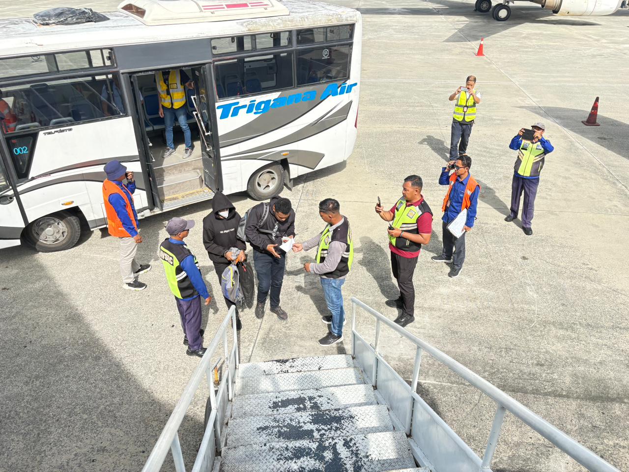 Satgas Ops Damai Cartenz saat bersama tersangka saat pemeriksaan tiket sebelum naik ke pesawat (foto: Istimewa)