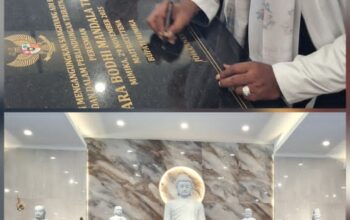 Bupati Mimika, Johannes Rettob saat diwawancarai usai penandatanganan prasasti di Vihara Bodhi Mandala (foto: Nando/ Torangbisa.com)