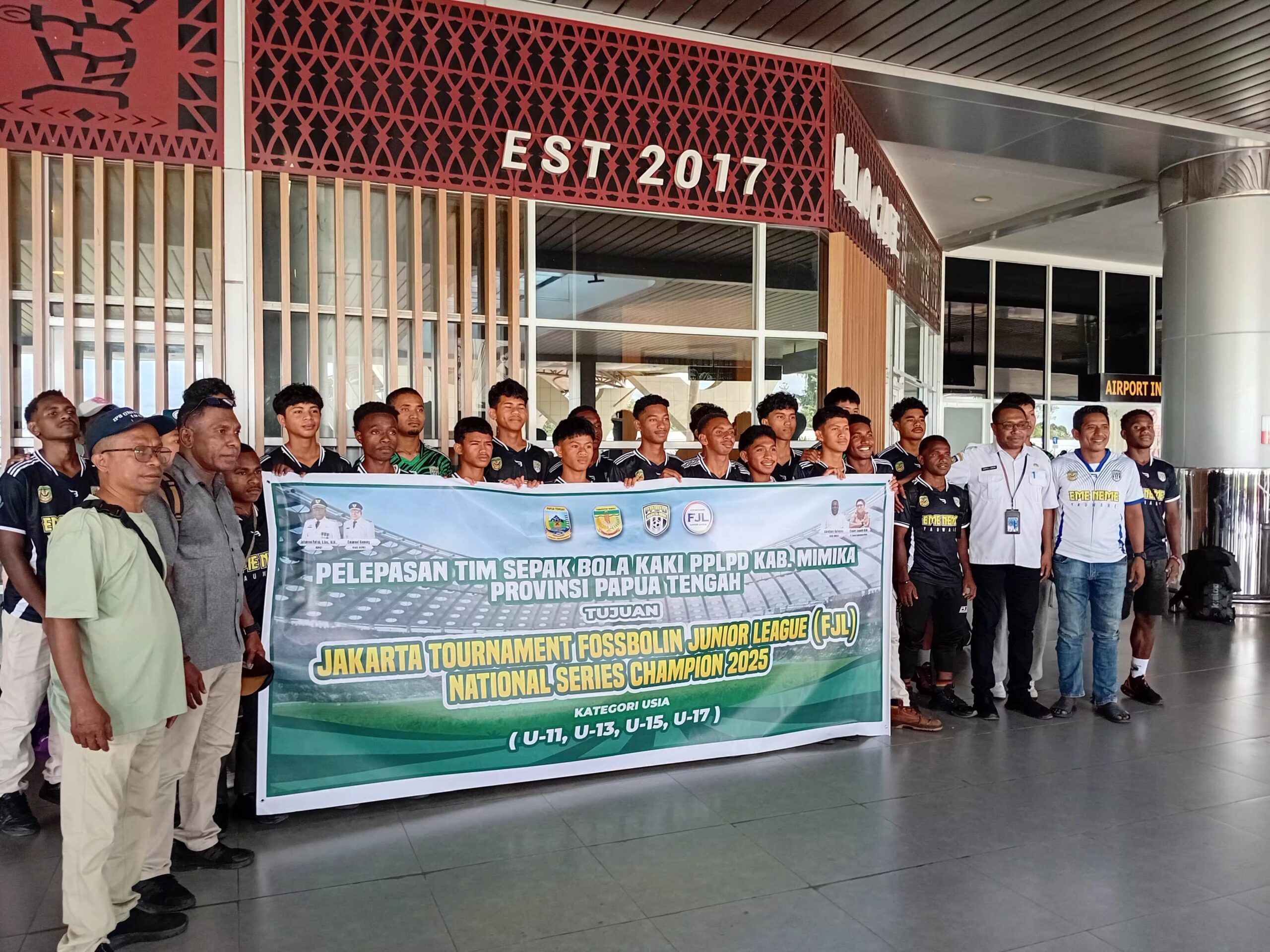 Timika, Torangbisa.com – Pelepasan Tim Sepak Bola Pusat Pendidikan dan Latihan Daerah (PPLD) Kabupaten Mimika yang akan berlaga di Jakarta Tournament Fossbolin Junior League (FJL) Nasional Series Champion 2025.Pe