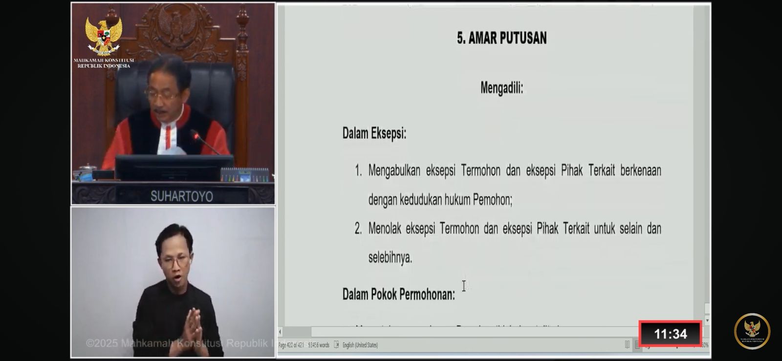 Dalam amar putusannya, Majelis Hakim MK menyatakan,
