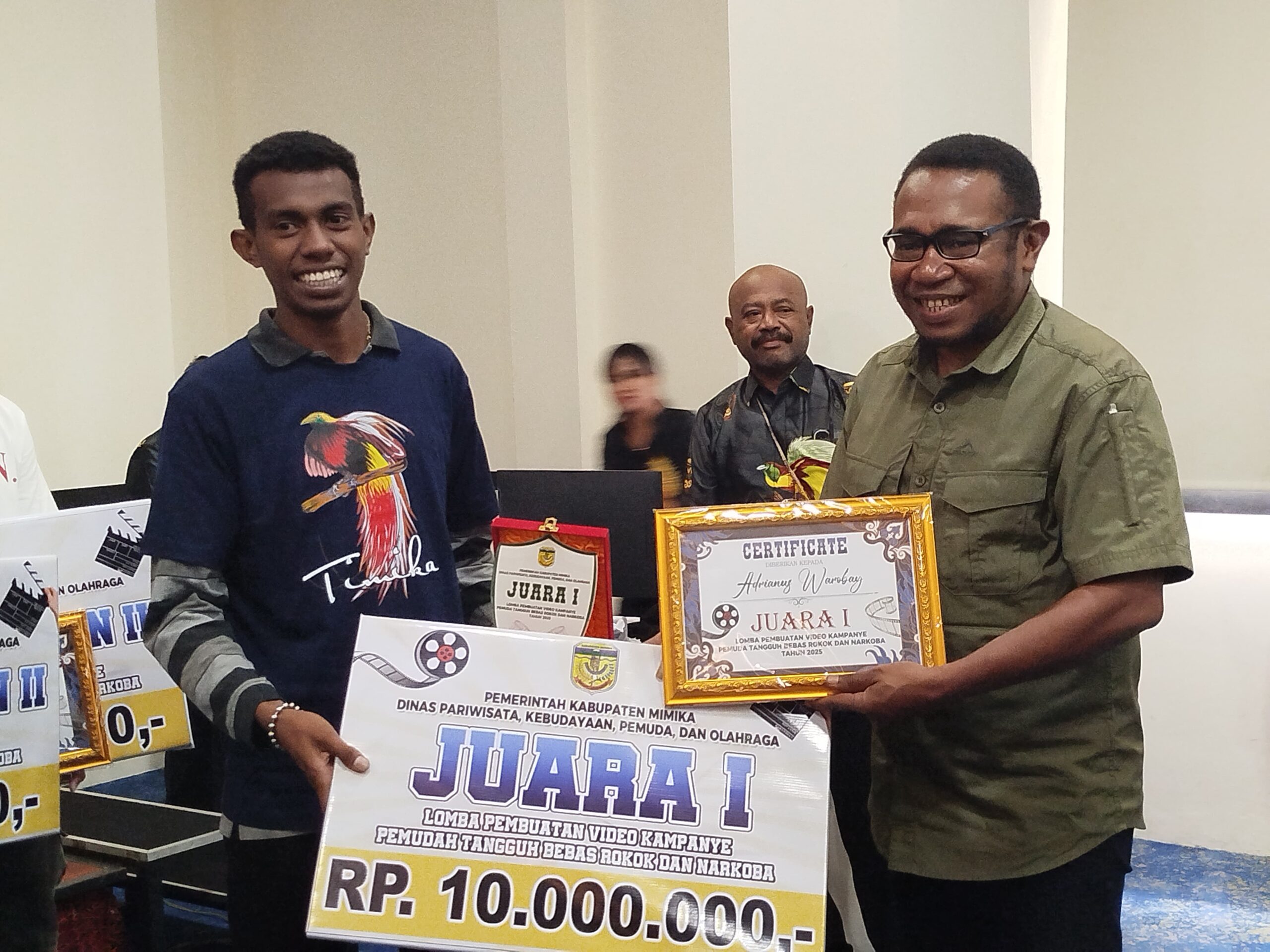 Timika, Torangbisa.com – Dinas Pariwisata, Kebudayaan Pemuda dan Olahraga (Disparbudpora) Kabupaten Mimika mengumumkan hasil pemenang lomba pembuatan video kampanye pemuda tangguh bebas rokok dan narkoba tahun 2025, Yang berlangsung di hotel horison ultima, Jumat(19/12/25).