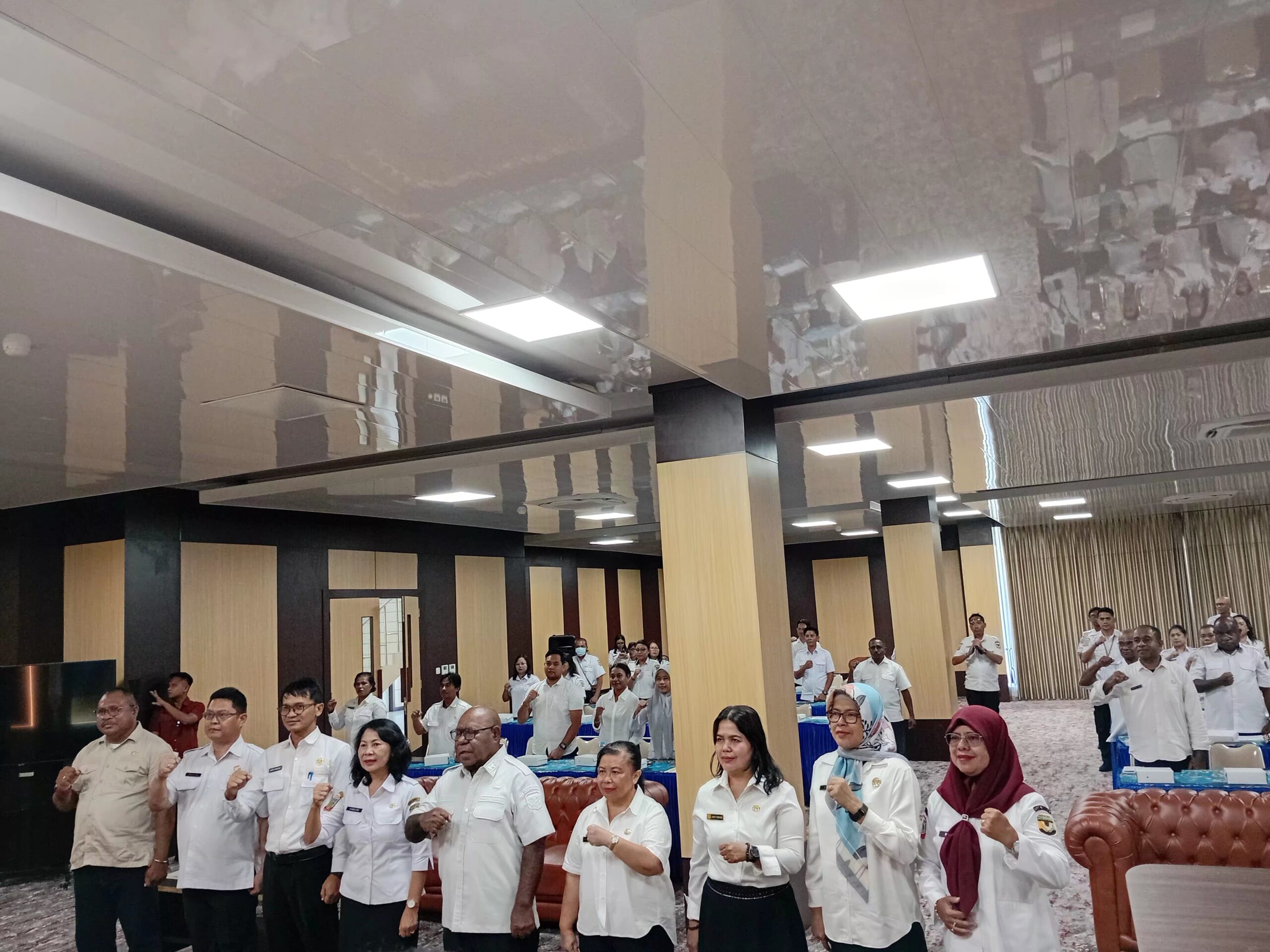 Foto bersama, Wakil Bupati Mimika, Emanuel Kemong dan pimpinan OPD pada kegiatan Sosialisasi Penyusunan Laporan Dana Otonomi Khusus (Otsus) dan Dana Tambahan Infrastruktur (DTI) (foto: Nando/ Torangbisa.com)