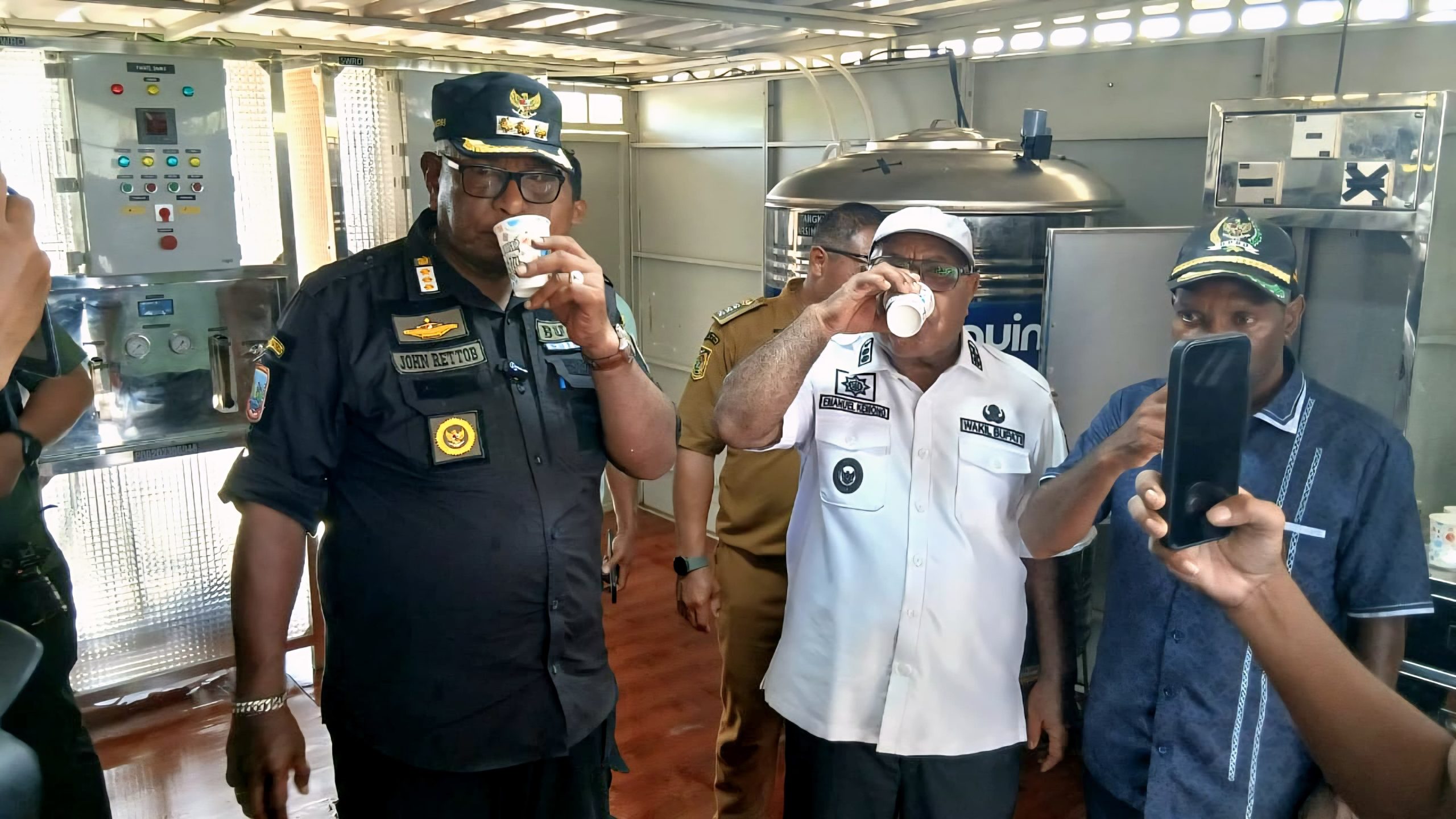 Sebagai bentuk keyakinan atas kualitas air yang disalurkan, Bupati Mimika, Wakil Bupati, dan Ketua DPRK Mimika secara simbolis meminum langsung air bersih hasil pengolahan tersebut.